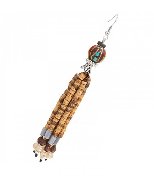 Bruine oorbellen met strengen cocosnoot plaatjes