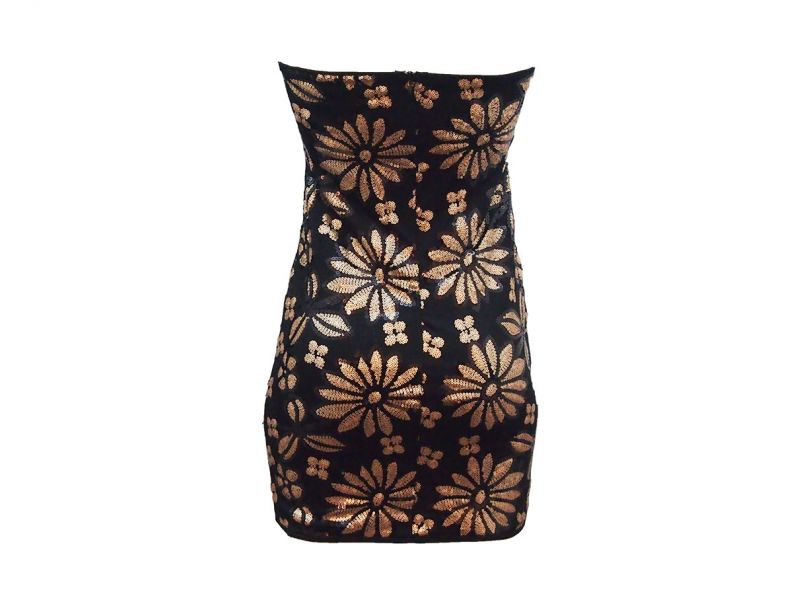 - Mooie klassieke strapless dames jurk. Deze jurk heeft een patroon van bloemen met zwarte en gouden pailletten. Leuke jurk voor naar speciale gelegenheden! Nieuw in verpakking met labels Kledingmaten 36 tm 46 (S-XL) Heb je een vraag of mocht je ergens belang bij hebben stuur me dan even een berichtje. Gratis verzending! Levertijd 1 - 3 werkdagen. Veilig en vertrouwd betalen met PayPal. 2114-1-Gold/Black