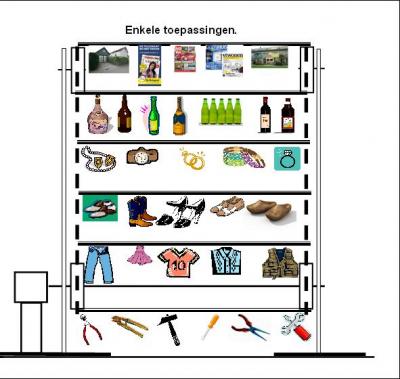 Aan de Paternoster kunt u bakken, vakjes of hangers hangen (voor kleding), etc. (zie ook voorbeeld van toepassingen)